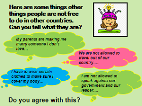The Powerpoint explains the importance of liberty and freedom and how these values are not necessarily present all over the world. The children are guided through the various forms of freedom we enjoy in Britain and opens discussion on whether this means that we can do whatever we like. The unit also includes a short story in which a child begins to ignore rules because he has just learnt about freedom and liberty at school. The story tackles scenarios where we can begin to violate freedom of others by getting freedom and liberty confused with doing what we want.