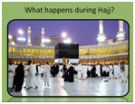 The slide show deals with Hajj as a sacred journey and why it needs to be performed. The slides also explain the different rituals that take place during Hajj and the significance of each one.