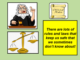 The unit includes a slideshow which explores the need for laws and how they keep us safe. The slides go through laws that protect us every day and ones that we take for granted. The power point also goes through what happens when people break the law. The pack also includes a short story about a little boy who wishes that they were no rules or laws. He then encounters familiar situations without the laws to protect him. The children can pick out points key parts of the story for basis of discussion.