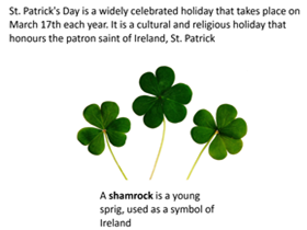 Download a school assembly on St Patrick’s Day and the Patron Saint of Ireland. The slide show covers why St Patrick’s Day is celebrated and how people celebrate it around the world. This unit also includes a short story about the story of St Patrick and how he had come to Ireland to spread Christianity.